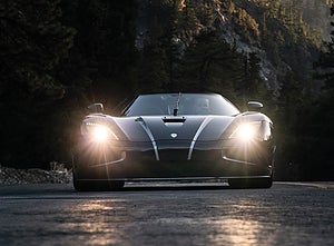 Koenigsegg har på relativt kort tid nått en hög status bland världens bilkonässörer och bilarna betingar lika höga priser som storheter från Ferrari. Bilen som säljs på auktionen i Abu Dhabi är en Agera R från 2014, en modell som endast är gjord i 18 exemplar. Den aktuella bilen är lackad i blått med synliga kolfiberdetaljer. Dubbelturbo-V8:an lämnar hisnande 1140 hästkrafter. Agera R kan köras på etanol, så det är nästan en miljöbil. Den är till och med snabbare på etanol. För att vara en Koenigsegg har den gått långt, 640 mil.