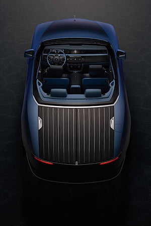 Inuti däcket finns dubbla kylskåp som kan förvara två flaskor champagne, där även fyra glas, servetter och andra tillbehör får plats. Två pallar som är designade av Rolls-Royce och tillverkades av den italienska möbeltillverkaren Promemoria matchar bilen medföljer.