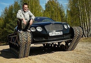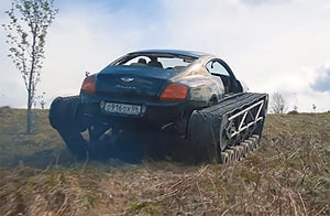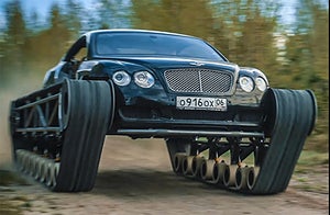 En Bentley Continental GT får ett bandaggregat och ett flertal bärhjul som ska driva gummibandet där det förut satt snygga bilhjul – en klassisk stridsvagnskonstruktion som dock krävde en hel del ombyggnad av Bentleyn. För att kunna komma in i bilen tvingades man ta bort dörrarna.
