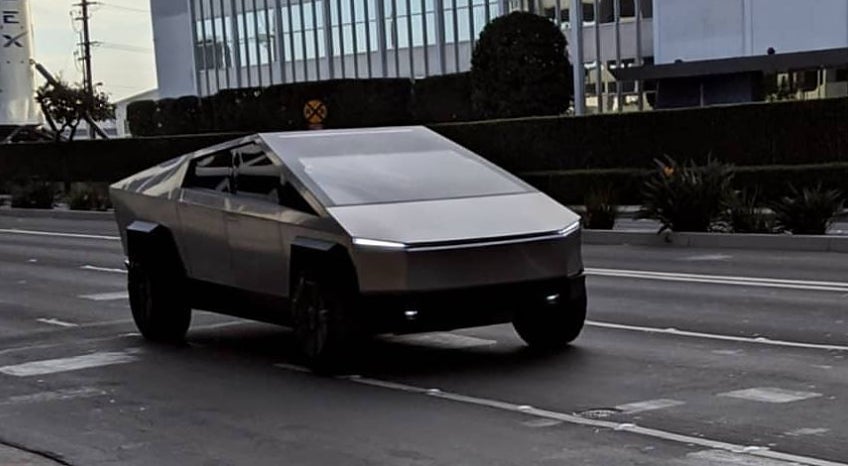 Tänk dig att möta Jay Leno och Elon Musk mitt i trafiken i nya Tesla Cybertruck.