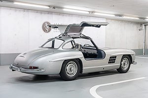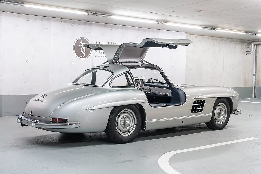 Sagan om Mercedes 300 SL börjar på tävlingsbanorna i början av 1950-talet. Mercedes hade fått upp farten igen efter kriget och skulle göra comeback på tävlingsbanorna. För att hålla nere vikten i den nya bilen byggdes den på en rörram som gjorde att man inte kunde använda vanliga dörrar. Lösningen blev att hänga lätta dörrar i taket på bilen i stället. Bland annat vann bilen Le Mans.
