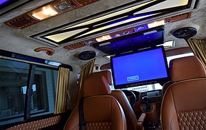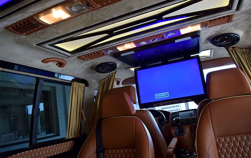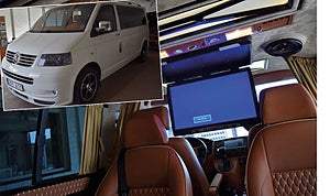 En vanlig Volkswagen Caravelle för att frakta barnen hem från skolan? Nej, den här minibussen bjuder passagerarna på en oväntad värld av lyxig komfort.