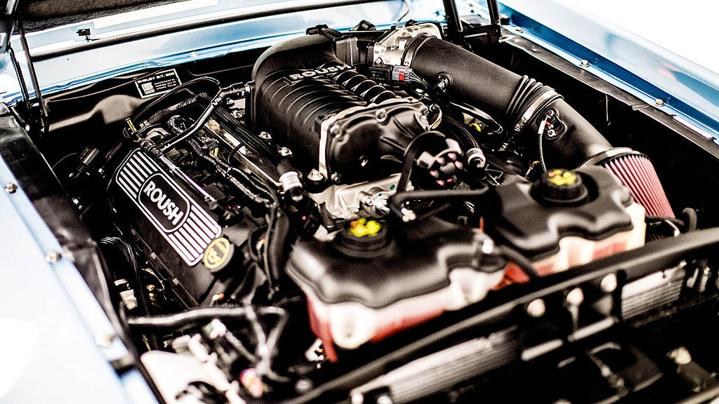 För Revology stoppar inte ner en gammal förgasarmatad 428 under huven utan deras Shelby GT500 har lånat Fords fullt moderna Coyote-motor, en femliters V8, och låtit Fordtrimmaren Roush Performance kompressorladda den till 600 hästkrafter jämnt. Så den kommer att köra ifrån ditt gamla skrot också. Sex växlar får man också, oavsett om man väljer manuell eller automat.