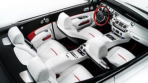 Med hjälp av formgivare från modevärlden har Rolls-Royce piffat upp Dawn-modellen med detaljer i sidentyg med unika mänster. För arbetet står Cherica Haye från Royal College of Art och läderkonstnären Michelle Lusby som tidigare arbetat åt Mulberry.