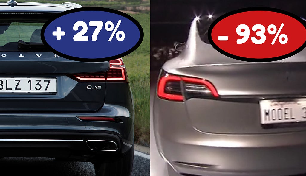 Rusning till dieselbilar - Tesla tappar 93 procent