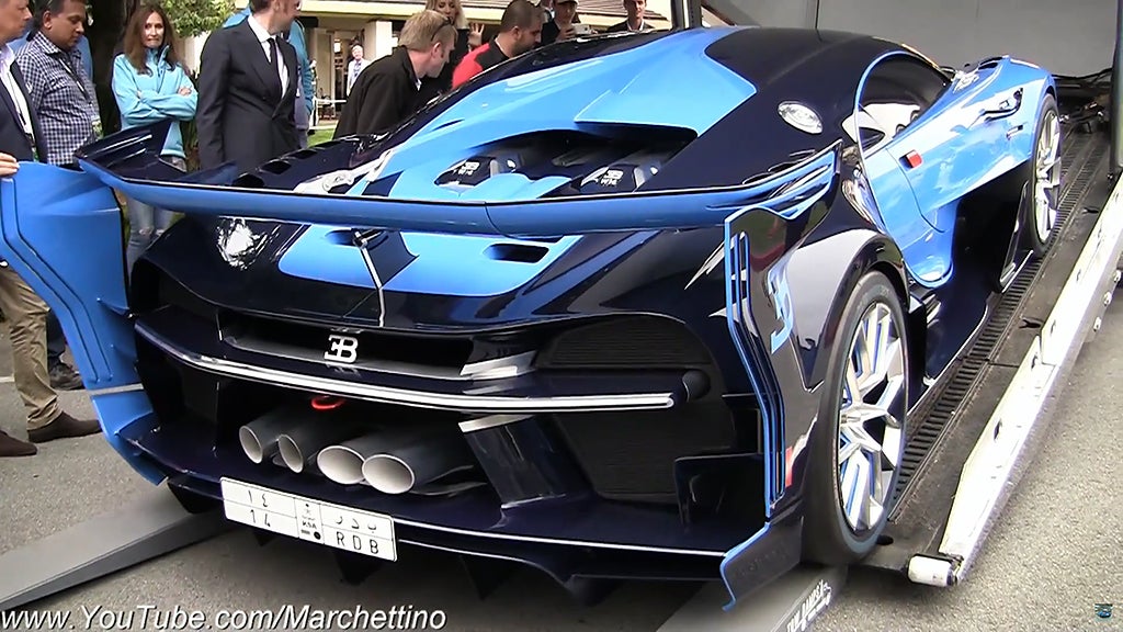 Med det sagt, så var det en påpasslig fotograf som fångade ögonblicket när konceptbilen Bugatti Vision Gran Turismo skulle lastas och åka hem från Councours d’Elegance på Pebble Beach till sin nya ägare i Saudiarabien. Det visade sig vara rätt så krångligt att få upp åbäket på släpet. Inte nog med det, soppan tog slut under själva lastningen också.