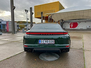Grön porsche Panamera sedd från sidan.