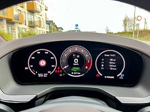 Övergången mellan el- och bensindrift sker helt sömlöst. Kör du till exempel på motorvägen och snabbt behöver köra om, startar V8:an utan ansträngning. Ingen ryckighet eller tvekan – bara ett lätt mullrande från de åtta cylindrarna.