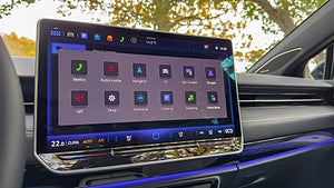 Infotainmentskärmen mäter imponerande 15 tum med hög upplösning och tryckkänslighet, medan systemet är utformat för enkel åtkomst till klimatanläggning och assistanssystem. Bakom ratten har VW skrotat den klumpiga digitala instrumentpanelen och integrerat en liten skärm diskret i kupéns rena linjer. Det enda som stör är de touchknappar på ratten som har blivit en fast punkt för kritik mot VW.