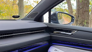 ID.7 är inte i samma liga som BMW i5 Touring, men den håller hög klass när det gäller kvalitet. Testbilen gör dock ett tappert försök att närma sig den bayerska bakhjulsdrivna bilen med ett interiörspaket som bjuder på ventilations- och massagefunktioner i framsätena samt ett välspelande Harman Kardon-ljudsystem.