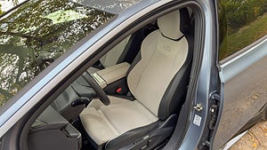 När VW ID.7 Tourer inte tål jämförelse med ID.4, är det alltså inte ett tecken på bristande kapacitet, utan snarare ett ordentligt kliv uppåt för den elektriska kombin. Detta blir särskilt tydligt i kupén, där VW har gjort mycket bra med ID.7 Tourer. Framför allt möts man av en genomgående känsla av kvalitet när man sätter sig i kupén. Inredningen präglas av rena linjer som ger en luftig och elegant yta. Materialmässigt skiljer sig ID.7 från ID.4 med fler mjuka ytor, större tyngd och mindre plast.