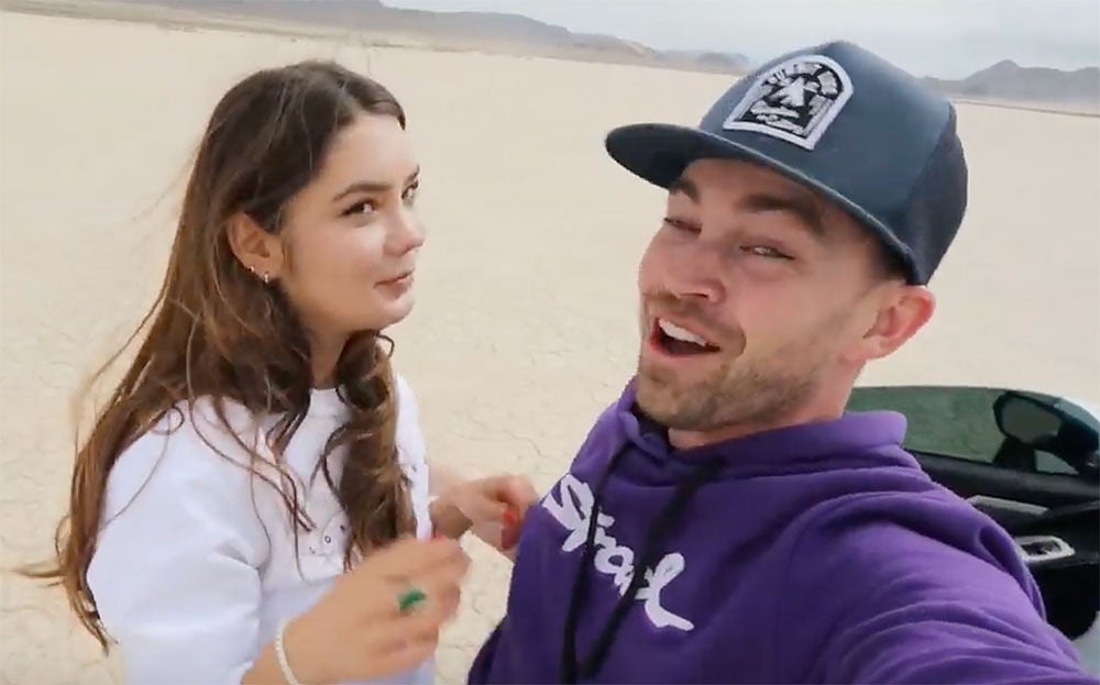 Sedan ger han chansen till tjejen som skött filmkameran, hon heter tydligen Tessa, och hon får köra så snabbt som hennes nerver klarar. Och resultatet är inte illa: 275 km/h.
