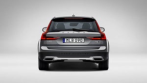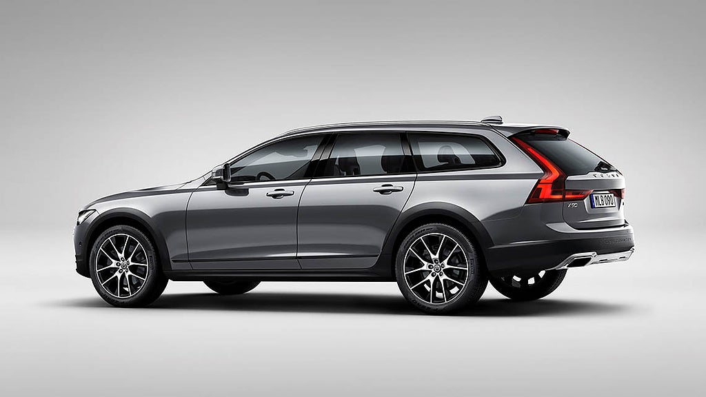 Nu kommer den senaste i raden av skogskombi från Volvo: V90 Cross Country. Mönstret är det samma som förr med höjd fjädring och terrängplast runt hjulhusen. Stötfångarna är utformade för att klara mer ojämna underlag.