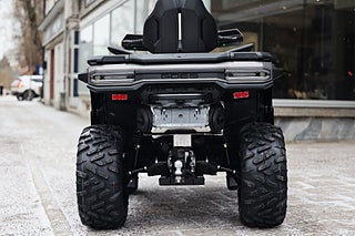 Den stora V-Twin-motorn ger jämn och förutsägbar kraft, medan servostyrningen och den välbalanserade fjädringen gör körningen bekväm även i tuff terräng. Konstruktionen är robust på riktigt – ramen är förstärkt, markfrigången hög och komponenterna dimensionerade för lång livslängd.
