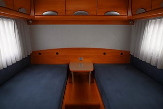 Bodelen erbjuder en rymlig och social planlösning med svängbara framstolar som tillsammans med sittgruppen skapar en trivsam yta. Här finns gott om ljusinsläpp från flera takluckor samt bra förvaringsmöjligheter i överskåp och det stora garaget med sidolucka. Sovmöjligheterna är genomtänkta med 4 bäddar i form av stor dubbelsäng bak samt nedfällbar säng fram.