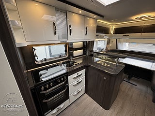 ALDE Compact 3020 HE från modell 545 (lastlucka utgår), ALDE Vattenburen golvvärme OBS! se datablad för modeller, Spis THETFORD inkl.grill och en elektrisk kokplatta Endast PRESTIGE, Köksfläkt Dometic med hastighetsreglering, Samtliga av våra fordon är fukt-& funktionstestade., Vi byter gärna in din husvagn/husbil.