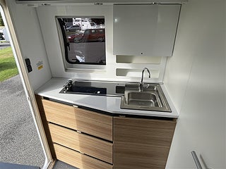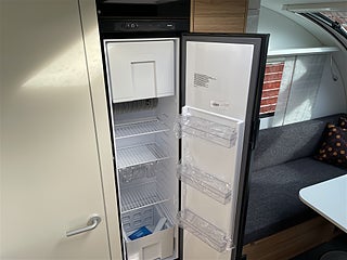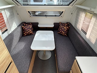 En liten smidig vagn med allt du behöver som nedbäddbar soffgrupp som ger två långbäddar eller en stor dubbelsäng med plats för 3