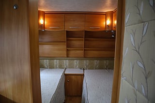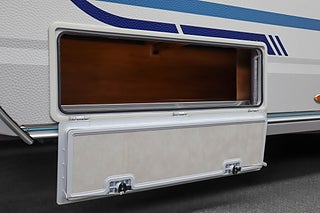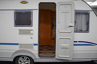 Planlösningen är mycket uppskattad med två enkelsängar bak samt bäddbar sittgrupp fram, vilket ger totalt 4 bäddar.