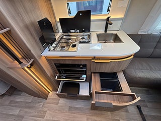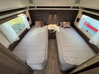 B2 långbädd . Komfortpaket . Extern antenn router . Heiki 2 taklucka ,Ugn . höjd totalvikt 2000 kg . New Haven klädsel