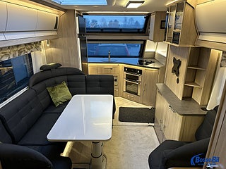 Vinterisolerad avloppstank, Kabe Imperial 780 TDL FK KS, Välkommen in i denna premiumvagn från svensktillverkade KABE., Du möts av ett snyggt frontkök där mikro, ugn och kyl med separat frys finns., Mysig soffgrupp med soffa fåtölj och TV-bänk., Sovrum med skön queenbed., Badrum bak med Cinderella förbränningstoalett handfat med toalettskåp samt separat dusch och handdukstork., Cinderella förbränningstoalett, Öppningsbart frontfönster, Ekopaket - airvent - solcell