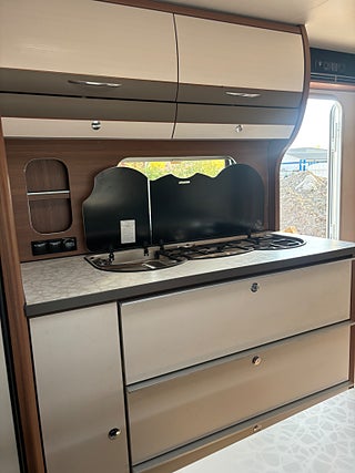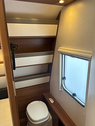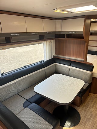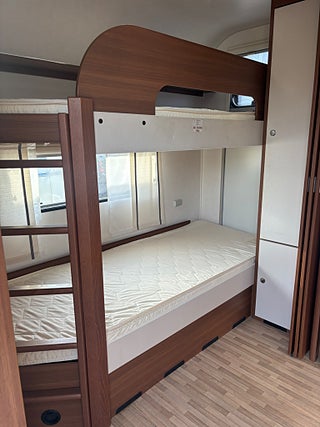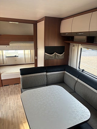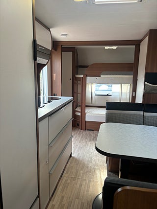 Modern och välplanerad vagn med upp till 6st sovplatser. Fördelat på våningsängar bak, dubbelbädd fram och bäddbar dinette. 3 lågig spis, Trumatic luftburen centralvärme med elpatron och golvvärme, batteri med inbyggd laddare, kassettoa mm. Välvårdad vagn i ett mkt fint skick! Finansiering ombesörjes från 6.95% ränta. Ring och hör vilket finansieringsalternativ som passar bäst för just er. OBS! Vi är mitt uppe i byggandet av vår nya bilhall och kommer under byggtiden inte ha fasta öppettider utan endast ha tidsbokade visningar av våra fordon. Vi kommer under denna tid INTE heller ha möjlighet att svara på mail