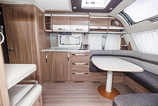 Husvagnen är ljus och fräsch.