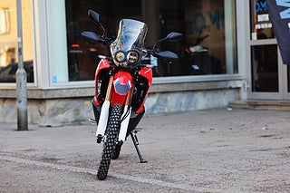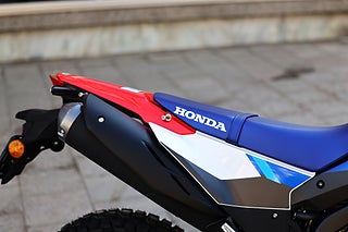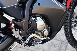 Hondas minsta äventyrshoj finslipades 2025 med nya LED-blinkers och bättre värmehantering. Den pigga encylindriga motorn, som nu uppfyller avgaskraven EURO5+, svarar snabbt på gasen och den sexväxlade lådan är utrustad med slirkoppling. Tack vare en robust stålram med optimerad styvhetsbalans, aluminiumsving, lång fjädringsväg med nya dämpningsinställningar, hög markfrigång och 153 kg tjänstevikt är hojen lättkörd både på och utanför asfalten.