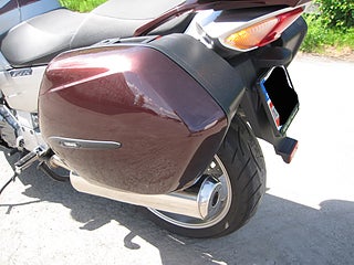 i de båda sidoväskorna och medföljer även en Toppbox ( Dessvärre har den lite repor på ena sidan ) och om vindar o väder tilltar