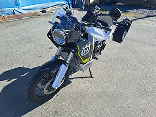 Motorcykeln är designad för maximal komfort och kontroll även under tuffa förhållanden. Den långa fjädringsvägen, 21"/18" hjul och robust skyddsutrustning gör att den klarar allt från asfalt till riktigt krävande terräng.