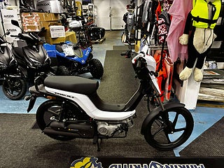Rieju Bye Bike är en kompakt och lätt 25 km/h moped med all utrustning du kan tänkas behöva, den upprätta körställningen i kombination med dom stora hjulen ger dig en avslappnad och säker körställning med mycket god överblick på trafiken. Några exempel på utrustning som levereras med som standard, 12-volts eluttag för t.ex. laddning av mobilen, 17” hjul och separat oljeblandning.