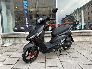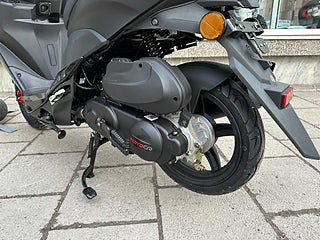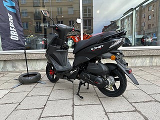 Vår prismedvetna ingångsmodell Comet är en flexibel sportskoter till bästa priset, med en tuff design! Detta är en mellanstor moped och passar lika bra för tjejer som killar, som är extra smidig och lätthanterlig ute i trafiken. Behöver du ha extra lastutrymme så kan du köpa till pakethållare med en snygg Toppbox bak på mopeden till ett lågt pris. Motorn har senaste tekniken med bränsleinsprutning som är mycket billig i drift med hög tillförlitlighet. Comet är en smidig unisex sportskoter med stora 12” hjul som är lättkörd även på sämre vägar. Detta är vår billigaste modell, men kvaliteten är lika hög som övriga modeller med samma trygghet med hela 2 års Garanti.