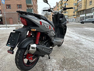 R9 är vår helt nya toppmodell, och är därför topputrustad. R9 har en stor, tydlig digital display som sätter en helt ny standard i klassen. Fantastiska köregenskaper, gott om utrymme, skivbromsar fram och bak gör R9 både sportig och säker att köra i alla slags väder.