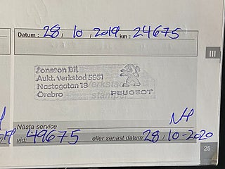 Fordonets historik - 10 händelser finns registrerade