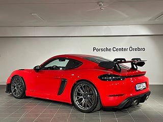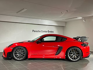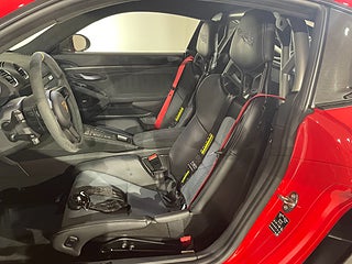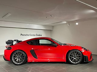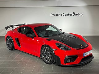 Nya däck. Club Sport-paket. Weissach-paket . 90-literstank. Magnesiumfälgar 20-tums 718 Cayman GT4 RS. Farthållare. Lyftsystem för framaxel. Brandsläckare. LED-strålkastare inkl. Porsche Dynamic Light System Plus (PDLS+). Ljusdesignpaket. Hastighetsbegränsningsövervakning. Park Assist (bak) med backkamera. Golvmattor. BOSE® Surround Sound System. Smartphonefack. Fönstertriangel i kolfiber. Bilnyckel i exteriörfärg med nyckelfodral i läder. Automatiskt avbländbara backspeglar. Weissach-paket. Chrono-paket. Bromsok svartlackerade (högglans). Instrumenttavlor i White. Sport Chrono-instrumenttavla i White. Lock till förvaringsfack i Race-Tex med PORSCHE-logotyp. Solskydd i Race-Tex. Säkerhetsbälten i kontrastfärg - Guards Red