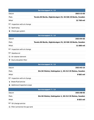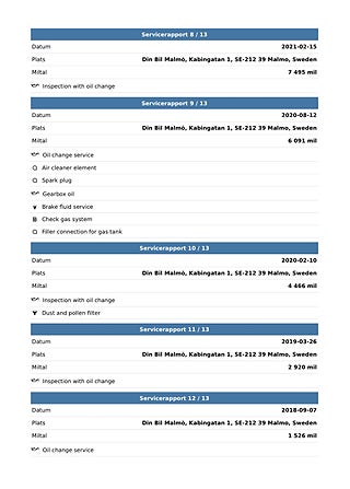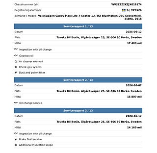Fordonets historik - 17 händelser finns registrerade