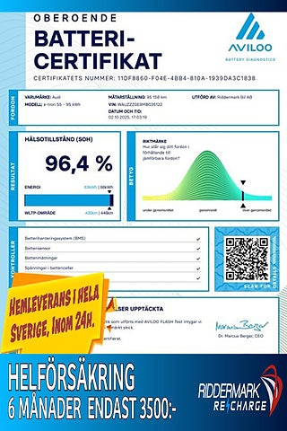 Audi?e?tron?55 quattro?2021 är en hel-elektrisk SUV som förenar lyx och innovation med trygg fyrhjulsdrift. Bilen erbjuder en rymlig och välutrustad interiör, avancerade säkerhetsfunktioner och ett intuitivt infotainmentsystem – allt insvept i Audis skarpa design. Ett bekvämt, miljövänligt och kraftfullt val för dig som vill ha premium och hållbarhet i ett och samma paket.