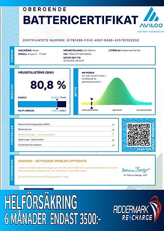 Modern elbil med 80 kWh-batteri, lång räckvidd och rymlig interiör. Perfekt kombination av miljösmart körning, komfort och smart teknik – redo för både vardag och långresa.