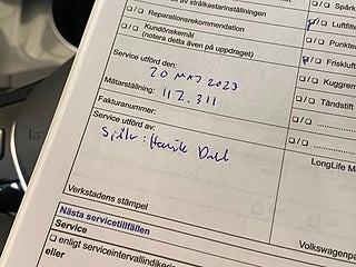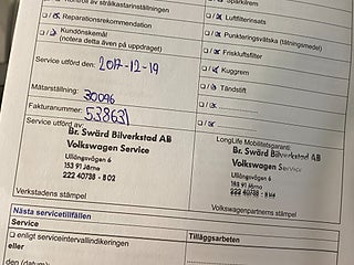 Fordonets historik - 18 händelser finns registrerade