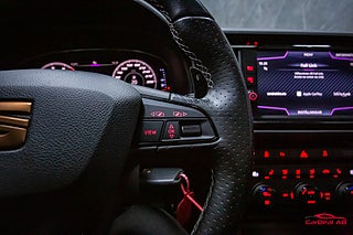 Sportiga och kraftfulla Seat Leon ST Cupra 2.0 TSI 4Drive finns nu i vårat lager. Bilen är utrustad med bland annat; Fyrhjulsdrift, Panorama, Apple CarPlay & Android Auto, Cockpit, Navigation, Ljudysystem från Beats, Adaptiv farthållare, Växelpaddlar och mera.