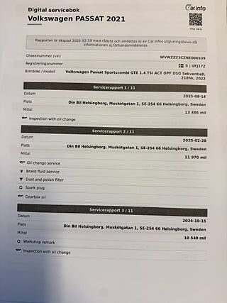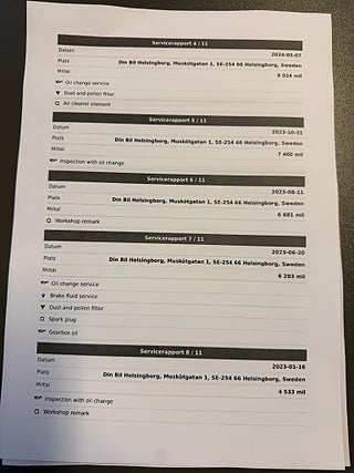 Fordonets historik - 8 händelser finns registrerade