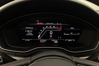 Quattro,Milltek sportavgassystem,RS-Design paket,Dynamisk Styrning,Svart-optikpaket,Virtual Cockpit,Bang & Olufsen ljudsystem,Panoramaglastak,Matrix LED-strålkastare,Head-up display,MMI Navigation,Parkeringssensorer fram/bak,Avplanad RS-Ratt,Växelpaddlar,Adaptiv farthållare,Lane assist,Döda vinkel varnare,RS-Sportstolar,Nappa skinnklädsel,Massagestolar fram,Elstolar fram,3-Zons klimatanläggning,Elektrisk bagagelucka,Keyless system,Tonade rutor,12V-uttag,Airbag förare,Bluetooth,Elhissar fram och bak,ISOFIX,Sätesvärme fram,Svart innertak,Svensksåld