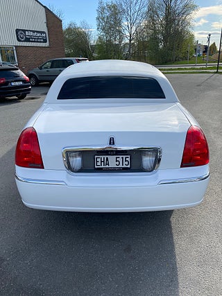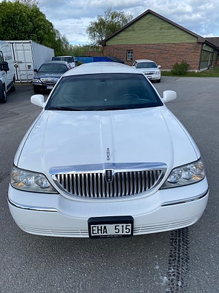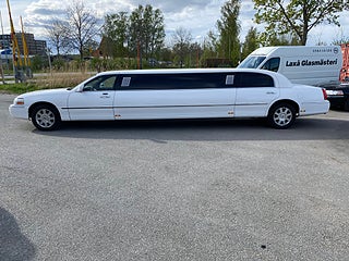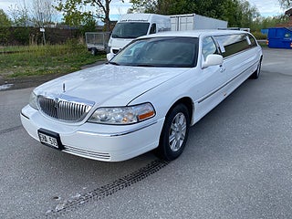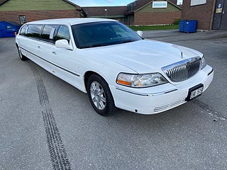 Vit 5-Dörrars Lincoln Town Car Superstretch Krystal Limousine årsmodell 2008. 5-Dörrars / bröllopsdörr. Reg EHA515. Körs på B körkort. Pris 325.000Kr inklusive moms = 260.000Kr+moms.