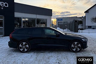 R-Design-utförandet ger bilen ett mer dynamiskt uttryck med sportstolar, svart innertak och sportiga detaljer både invändigt och utvändigt. Körningen stöds av digital instrumentering, adaptiv farthållare och Volvos avancerade säkerhetssystem för trygg och avslappnad färd.