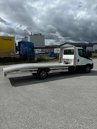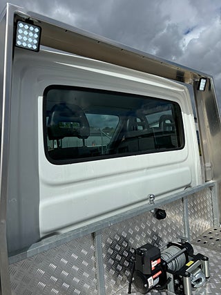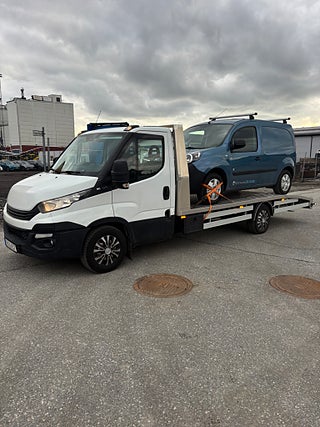 Flakbyggnation i galvat stål och eloxerad aluminium, Luftfjädring med inbyggd kompressor, dubbla förvaringslådor under flak, kraftig fjärrstyrd vinsch, rejäla lättviktsramper integrerade i bakstam. arbetsbelysning mm. Rejäl och välbyggd biltransport! Går mkt fint och är i bra skick! Pris 159900kr + fullt avdragbar moms. Alla former av finansiering ombesörjes från 6, 95% ränta. Ring och hör vilket finansieringsalternativ som passar bäst för just er. Vi har fler fina biltransporter i lager för omgående leverans, och vi kan även bygga om er befintliga transportbil till biltransport om så önskas. Pris fr 60000kr + moms för komplett byggnation inkl omregistrering. OBS! Vi är mitt uppe i byggandet av vår nya bilhall och kommer under byggtiden inte ha fasta öppettider utan endast ha tidsbokade visningar av våra fordon. Vi kommer under denna tid INTE heller ha möjlighet att svara på mail