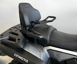 Den förlängda Touring-modellen har bekväm passagerarsadel med ryggstöd, vilket gör den idealisk för längre turer eller arbete där ni är två på maskinen. Servostyrning (EPS) möjliggör en lättare och mer bekväm åkning. Maskinen har servats hos auktoriserad CF MOTO verkstad hela perioden.