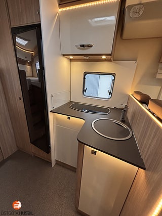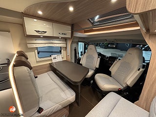 Rymlig 4bäddars husbil från Burstner, Enkelbäddar bak(bäddbar dubbel), Elektrisk nerfällbar dubbelsäng fram, Bredare entrédörr med fönster, Plisse mörkläggningsgardiner, Gasol och Täthetstestad 2025-08