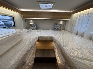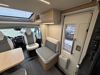 Hjuldrift: Framhjulsdrift, Airbag förare och passagerare, Artense Grey metallic med silverkaross, Dekor instrumentpanel silver, Intelligent hastighetsassistans, Manuell luftkonditionering, Nedlackade stötfångare i bilens färg, Regn- och skymningssensor, Zenec Multimedia 9" (inkl. backkamera), DC/DC Converter (laddningsbooster), Dekorativa kuddar 60Y Edition, Elektrisk tömning spillvattentank, Entrédörr med fönster och myggnät, EVOPORE madrass av specialskum, Förberedelse för luftkonditionering, parabolantenn och solpanel, Gasolutrymme med plats för 2x11 kg, Panoramafönster i förarhytt, Plisségardin vid vindruta och sidorutor, Isolerad och uppvärmd spillvattentank