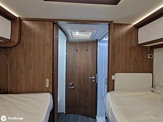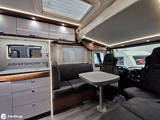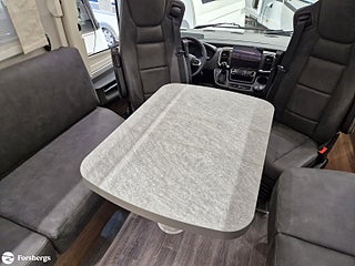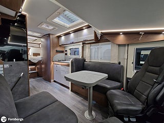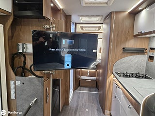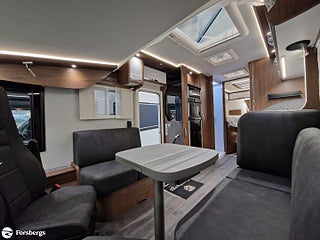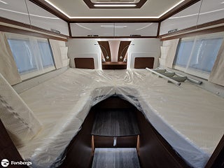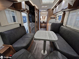 Hjuldrift: Framhjulsdrift, Klädsel: Living Sweden - Tyg, Märke chassi: Fiat Ducato AL-KO Fiat Maxi-chassi, Fiat Lounge paket + radio 10" - Automatic air conditioning, wireless smartphone charging station, DAB radio 10 with navigation and steering wheel control, fully digital instrument cluster", Style paket för integrerade TITAN - 16-tums tvåfärgade lättmetallfälgar, läderratt och växelspaksknopp, instrumentpanel i "Techno-Trim style", LED-strålkastare (Fiat)n för halvljusstrålkastare och dimljus. Endast för Fiat integrerade., Titan standardutrustning - TITAN utvändig design, elektrisk plisségardin med delvis öppning, manuella stabiliseringsben (förutom om luftfjädring beställs som tillval), 2?4 x uttag 230 V (beroende på planlösning), extra uttag 12V + 230V i garaget på höger sida, 2?4 x USB-uttag (beroende på planlösning), Titan-utrustningspaket - Markis 5, 5 m (manuellt manövrerad), Thermo Guard Plus (11 års täthetsgaranti), förberedelse för en andra TV i sovrummet, Fiat AL-KO Maxi chassi Integrerad 5, Förstärkt fjädring fram (Fiat), Laddbooster. Förar- och passagerarairbag, Traction+ inkl elektronisk stabilitetskontroll (ESC) och backstartshjälp, Motorbromshjälp vid körning i kraftig lutning, Elektrisk tillsatsvärmare, Hagelresistent tak i glasfiber, Genomgående dubbelgolv med ca 350 mm inre höjd, Centrallås för bodels- och förardörr via Fiat originalnyckel, Elektrisk mörkläggningsplissé för integrerade, Manuella stödben (ej tillgängligt vid tillval av luftfjädring), Förvaringsutrymme under sittgrupp med LED-belysning, Fönster Seitz S7 med toning samt myggnät och mörkläggning, Centralförsörjning med slangvinda och kabeltrumma (inkl 15 m kabel), Myggnät integrerat i bodelsdörr och samtliga takluckor, Elektriskt nedsänkbar säng fram, CBE-BUS manöverpanel med LCD-skärm, Ytterbelysning vid bodelsdörr i LED med rörelsevakt, Dimbar stämningsbelysning i LED, Dimbar spotbelysning i LED, 3/4x 230 V-uttag (beroende på planlösning), 230 V-uttag i bakre garage (placerat på passagerarsidan), 12 V-uttag i bakre garage (placerat på passagerarsidan), Färskvattentank ca 150 l inkl möjlighet till 50 l i körläge, Dubbla Thetford toakassetter, Alde Compact 3030 vattenburen uppvärmning, Kylskåp TecTower 10 med dubbelsidig öppning