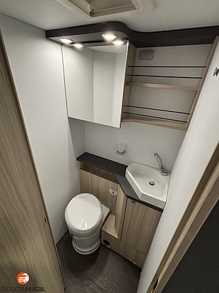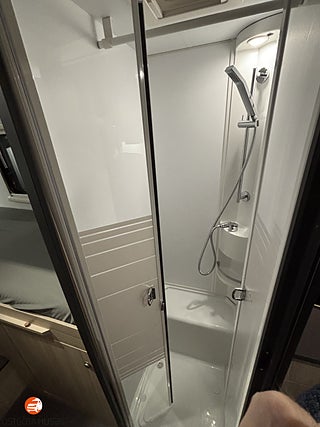 Nerfällbar dubbelsäng fram, Separat dusch och toalett