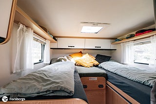 Inkommer omkring: 2026-03-27, Hjuldrift: Framhjulsdrift, Märke chassi: Fiat Ducato, Fiat Ducato 3.500 kg | 2.2 | 103 kW | 140 HK Euro 6 | 8-steg automatisk växellåda, Elektrisk parkeringsbroms, Caramatic SafeDrive PLUS (tvåflaskssystem med gastrycksregulator och crashsensor), Skjutbara mörkläggningsgardiner, Golvuppvärmning elektrisk, Combi 6 E värme (med elvärme), Förberedelse för backkamera, Safety paket inkl. ACC - Bromsassistent med fotgängar- och cyklistigenkänning, Varningsystem för avåkning, Intelligent hastighetsassistent, Adaptiv farthållare >30 km/h, Sunlight V-modeller Multimediapaket 9" ink Backkamera (Apple CarPlay & Android Auto) OBS ej Multifunkt.ratt, Fönster i förlängningen ovanför hytten, Ombädding enkelbädd tilll dubbelsäng, One paket Black (Markis och cykelställ till 3 cyklar), Basic paket - Bridge Light | Myggnätsdörr (enkel) | Spegel med klädkrok | Panoramataklucka 70 x 50 cm | Tacklucka med klart glas 40 × 40 cm, Paket med lackerade stötfångare - Kofångare framme lackerad i fordonets färg | Skid Plate i svart | Dimljus, Paket med aluminiumfälgar bicolor - Ratt & växelspaksknopp i läderutförande | Luftutlopp med silverapplikationer (Techno Trim) | 16" aluminiumfälgar bicolor, Start & Stop funktion inkl. booster, Klimatanläggning i förarhytt (manuell), Däck M+S* Camping (snöflingor), Varselljus integrerad i standard strålkastare, Strålkastare med svart ram, ESC (electronic stability control) including ASR (anti-skid control), hill holder (hill start assist), trailer stability control and PCB (post-collision braking), Traction+ med Hill Descent, Ytterbackspegel (elektrisk och uppvärmd), DAB antenn inbyggd i ytterbackspegel, Radioförberedelse med högtalare, Reservdelssats till däck Fix & Go Kit, Krangningshämmare på fram- och bakaxel för komfortable köregenskaper, Förar-/passagerarstol i samma klädsel som i bodelen med dubbla armstöd (Captain Chair), Vridbart förar- & passagersäte, Förar- och passagerarsäte med svankstöd, Höjd- och lutningsjustering för förar- och passagerarsätet, Takets och bakpartiets ytterskal av motståndskraftig glasfiberförstärkt plast (GFK), Sidornas ytterskal av slät aluminiumplåt, Tak- och väggtjocklek 34 mm, Design bakljushållare i tre delar med full LED-ljus, Påkostad instegsdörr med ergonomiskt handtag in- och utvändigt, Tvåglas (utställningsbara) fönster med mörkläggningsgardin och myggnät (utom i toalettutrymme), Taklucka i matt plexiglas med myggnät, Rymligt bakre garage med ramsänkning och halksäkert underlag samt lastöglor och invändig belysning, Stänkvattentätningar på yttre lastluckor och dörrar, Lastvikt i bakre garage upp till 150 kg, Ergonomiskt utformade dynor för ökad sittkomfort, Isofix till 2 sittplatser, Förlängning av bordsskivan, Förstklassiga madrasser i alla sängar för högre liggkomfort, Avtagbara och tvättbara madrassöverdrag, Ribbotten i alla fasta sängar för högre liggkomfort, Bakventilerade förvaringsskåp och lådor, Kraftfullt AGM-bodelsbatteri (95 Ah) inkl. laddare (18 Ah), Kontrollpanel med information om vattennivå och batterikapacitet, Till- och frånkopplingsautomatik för start- och bodelsbatteri samt kylskåp, Elektrisk laddare för bodels- och startbatteri 12 V / 18 A, Yttre anslutning CEE för 230 V med automatsäkring, Box för gasolflaskor med plats för två 11-kilosflaskor, Lättåtkomliga och centralt placerade gaskranar, Ergonomiskt utformat kök med generös arbetsyta, Rymlig låda i köksdelen med Servo-Soft, 2-lågig spis med piezotändning och glaskåpa, Vattentank inkl. varmvattenberedare 116 l, Kylskåp på 78 l med separat frysfack på 11 l, Taklucka med integrerad myggnät